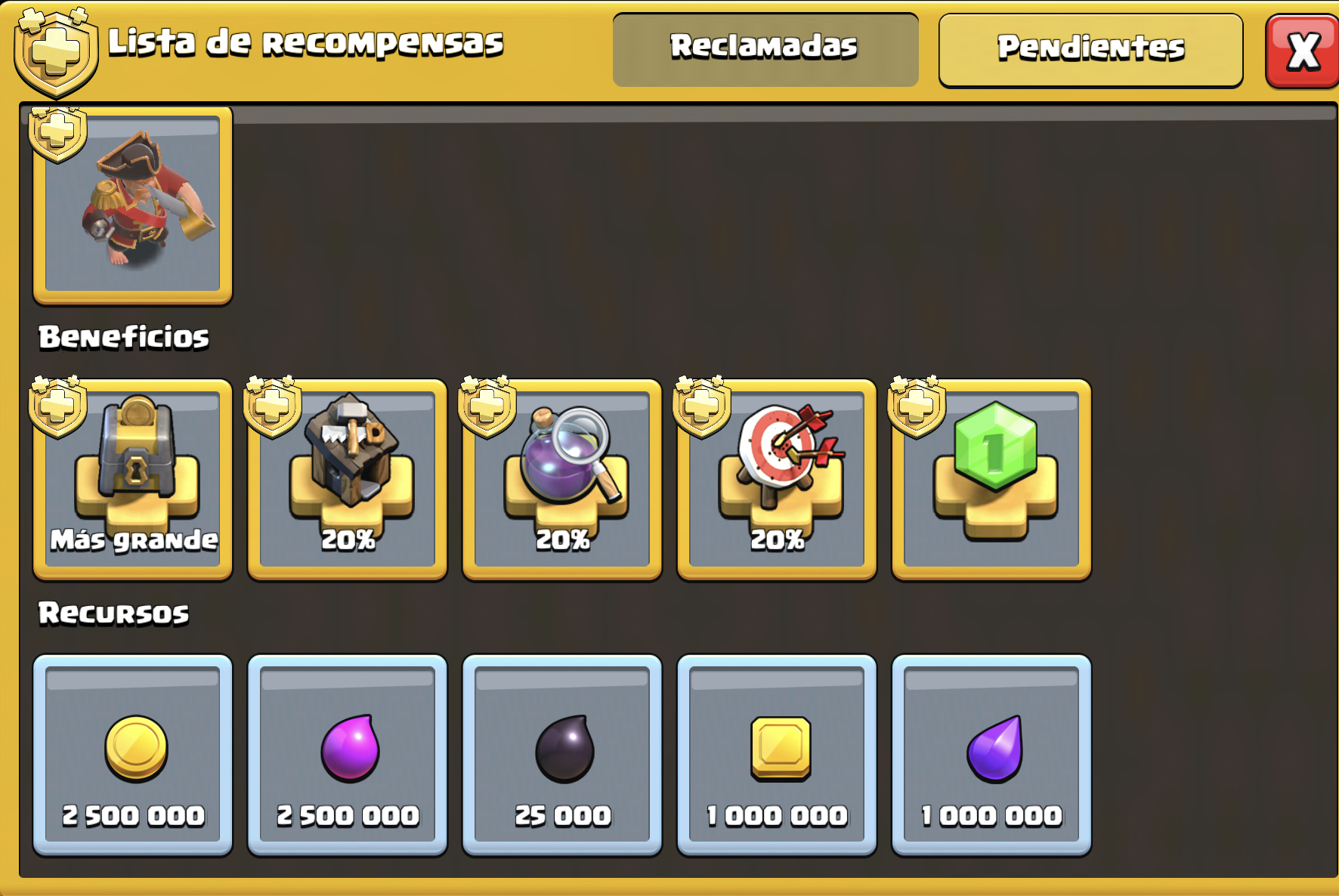 5. Cuando acaba la temporada recibes 25 millones de oro y elixir más 250.000 de elixir oscuro